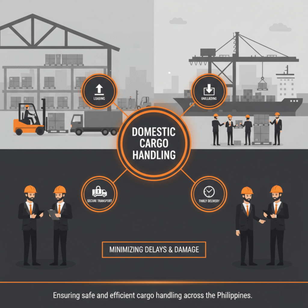 At Lunil O. Luna Customs Brokerage, we manage the safe and efficient handling of cargo within the Philippines. From loading to unloading, our team ensures goods are transported securely and delivered on time, minimizing delays and damage.