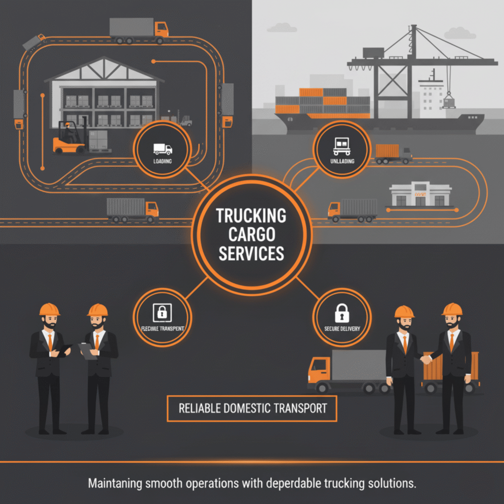 We provide reliable trucking solutions to move your shipments from ports, warehouses, or client locations. Our flexible and timely transport services help businesses maintain smooth operations and ensure cargo reaches its destination safely.