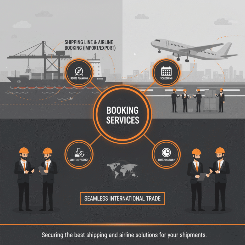 Our team coordinates with trusted shipping lines and airlines to secure the best routes, schedules, and rates for your import and export shipments. This ensures timely delivery, cost efficiency, and seamless international trade.