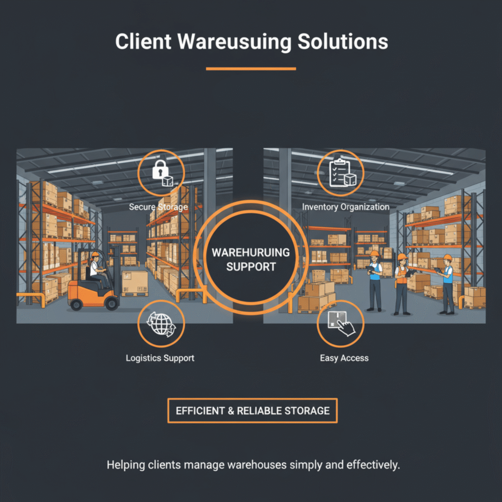 We help clients find and manage secure warehouse facilities for storing goods efficiently. From inventory organization to easy access and logistics support, we make warehouse management simple and reliable.